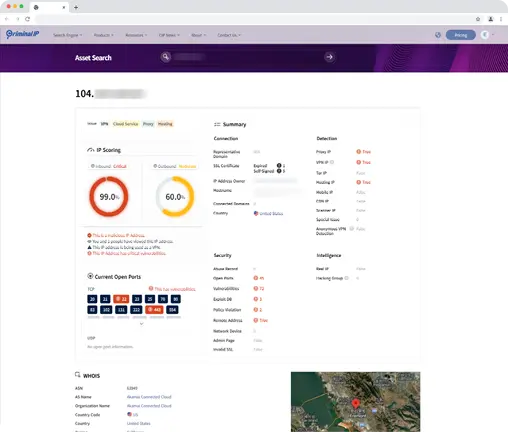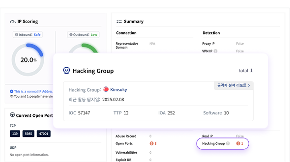 Criminal IP의 자체적인 위협 인텔리전스는 악성 IP 주소와 자산 취약점을 정확하게 식별하여