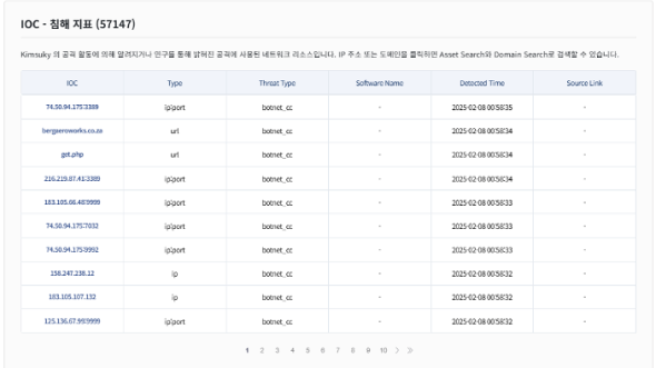 해킹 그룹에의 공격 활동에 의해 알려지거나 연구를 통해 밝혀진 공격에 사용된 네트워크 리소스를 제공합니다.